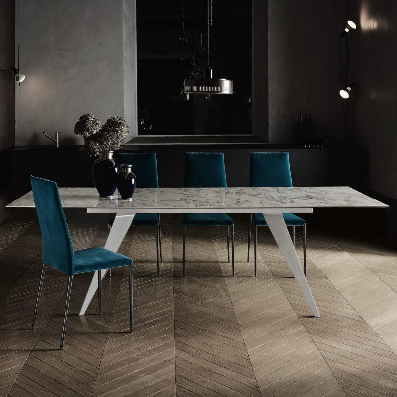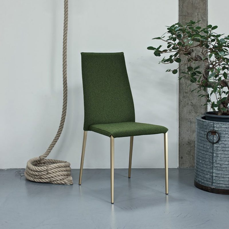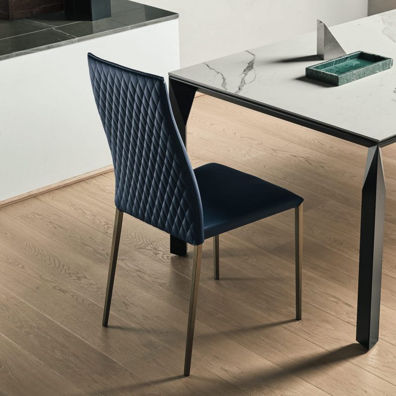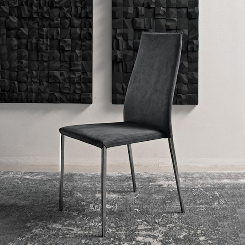 The elegant Tai Dining Chair from Bontempi with its flowing back has a comfortable upholstered seat and stylish metal legs lacquered in a choice of colours, or chromed.
