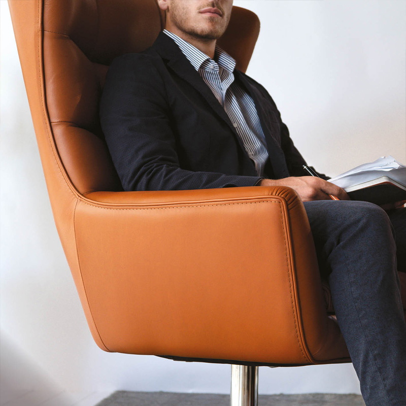 A high or low backrest, a seat with softness guaranteed by feather padding and incomparable comfort, this is the identikit of Jacob. An armchair inspired by the classic style of ‘bergère’ reading chairs and interpreted according to the design of Calia Italia, it combines natural leathers and fine fabrics. It is a true icon, which can offer a unique comfort experience.