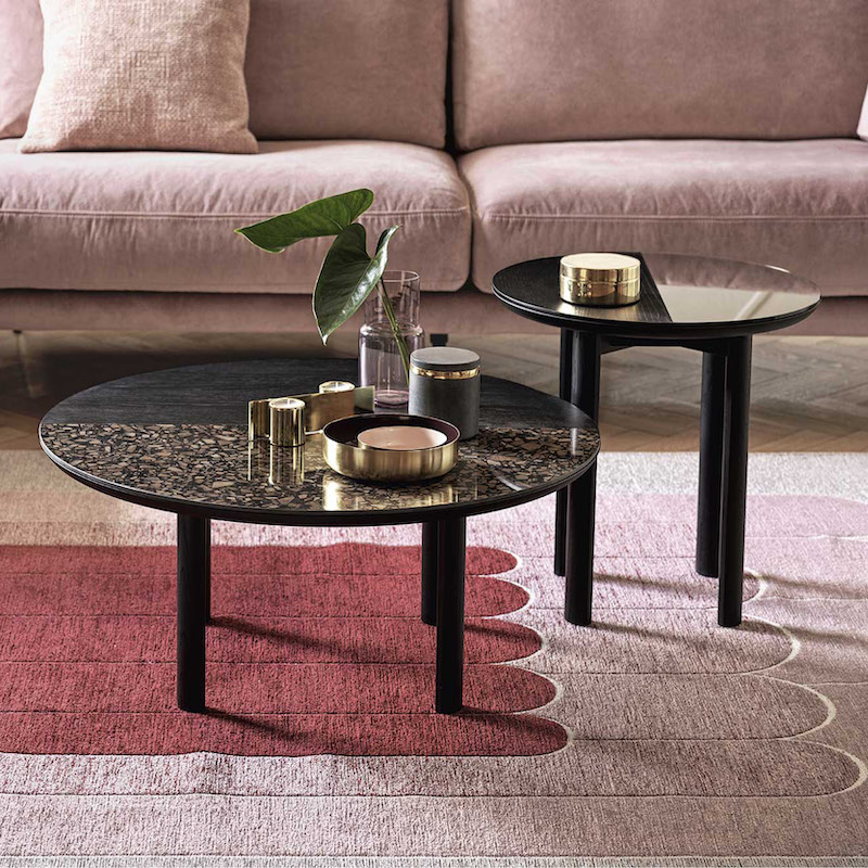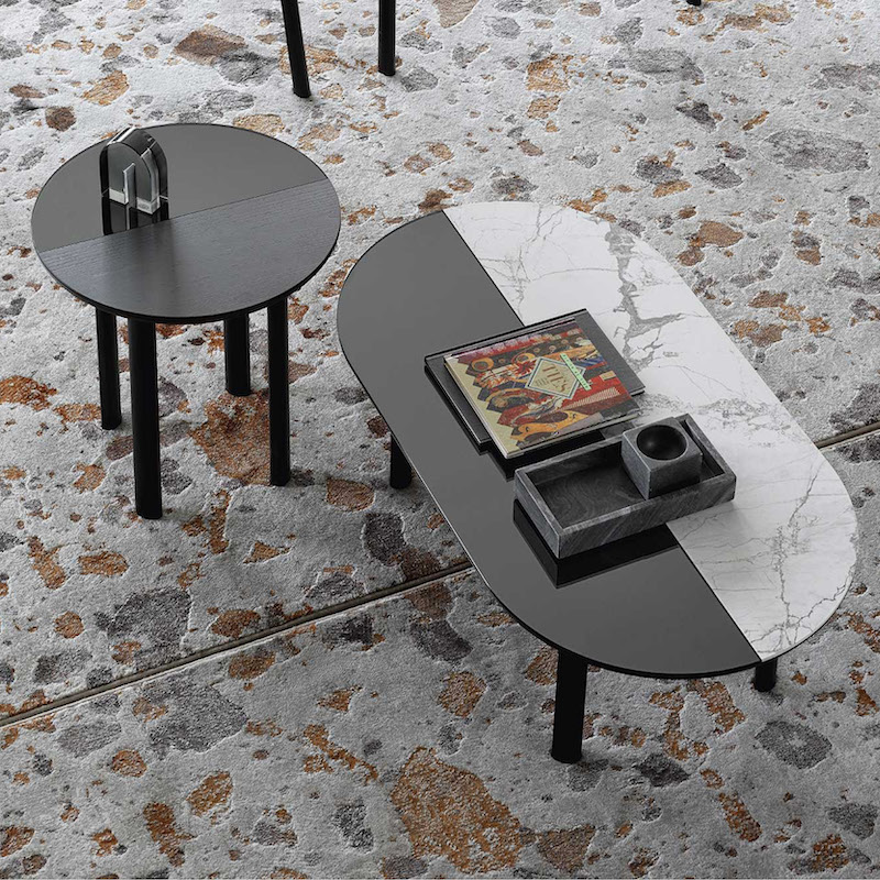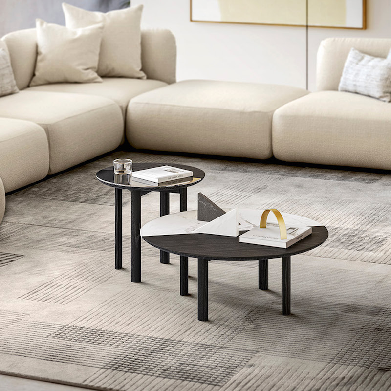 With geometric shapes sliced to form a large inlay, the coffee tables of the BAM range reveal a striking “minimal chic” style. Ceramic or mirror and wood merged in the top enrich the simple design of the BAM tables with a touch of distinctive charm. The structure is made of lacquered open-pore ash, while the tops are available in various finishes, but remain with two different materials combined together.