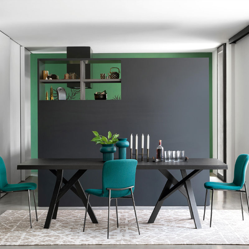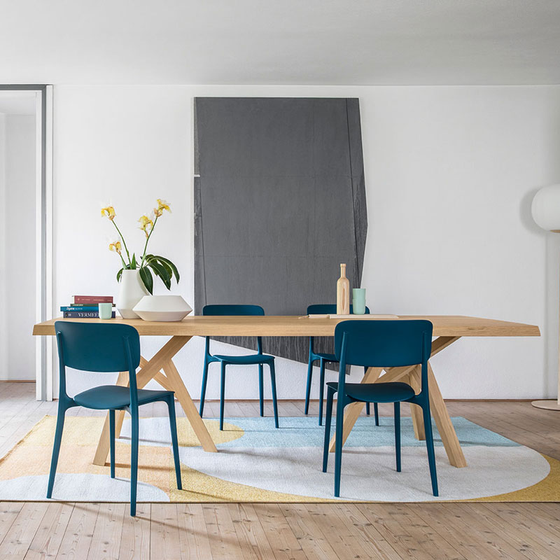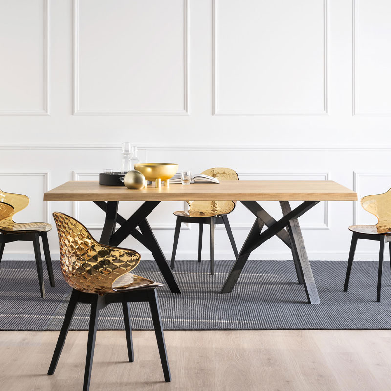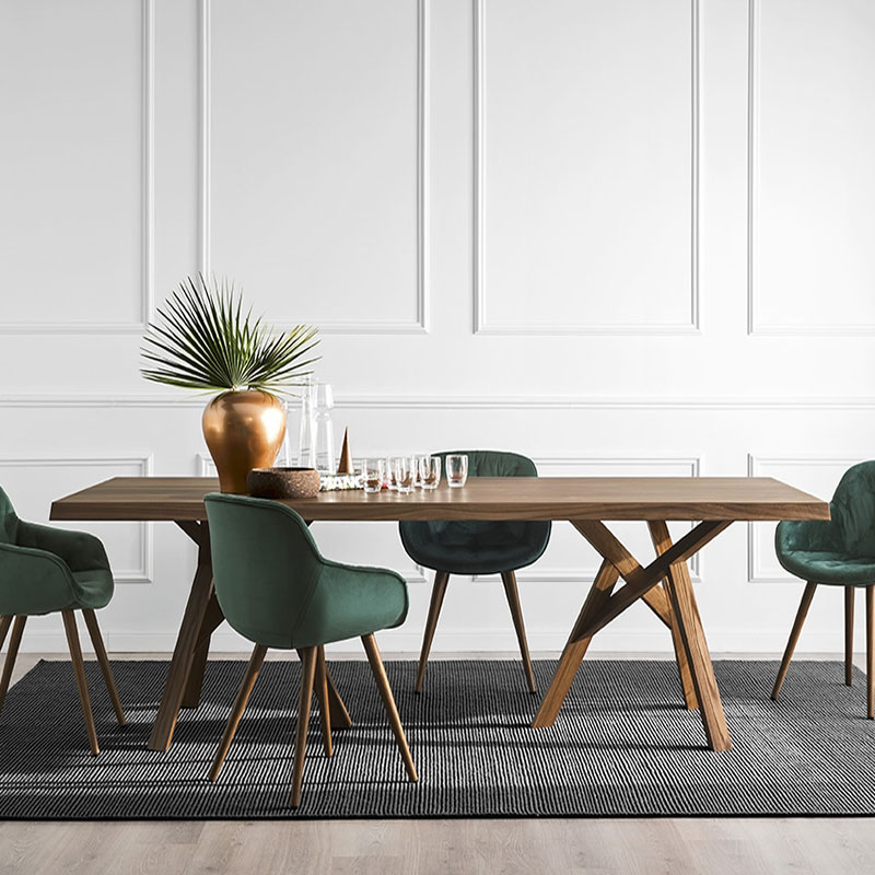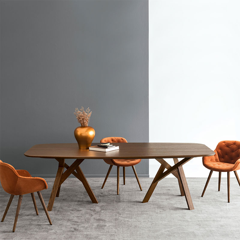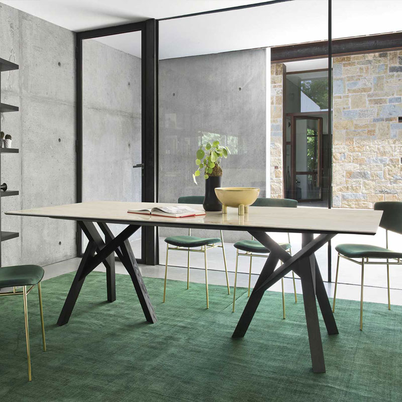 JUNGLE: a branched entanglement of triangular legs connected by sturdy joints made from solid wood – the highest expression of Calligaris’ ability to work with wood. The double base, made from natural Ash and available in several finishes, is the table’s main aesthetic feature, paired with a range of tops in different sizes and shapes.