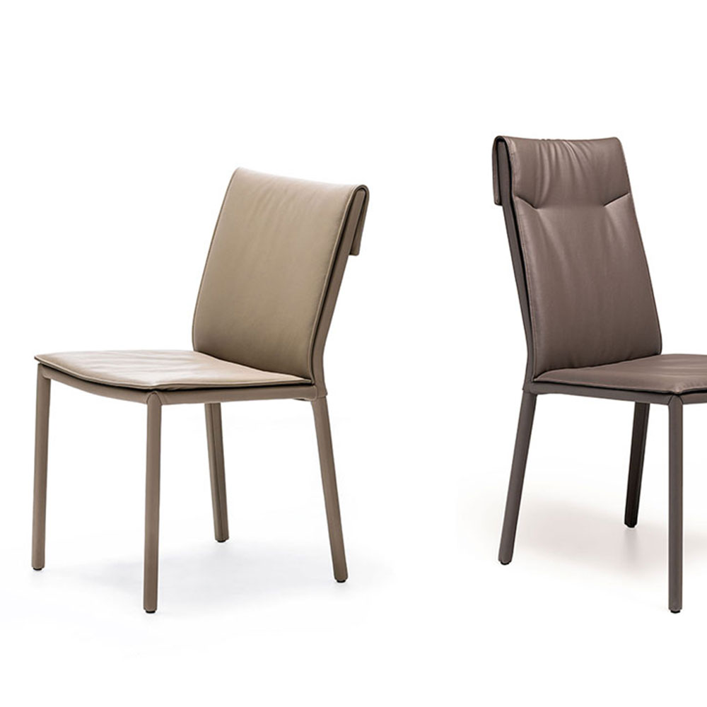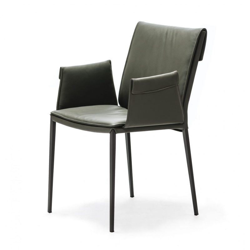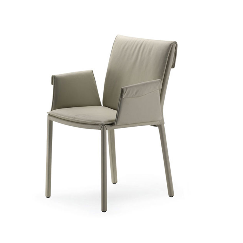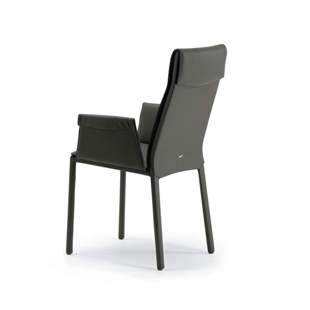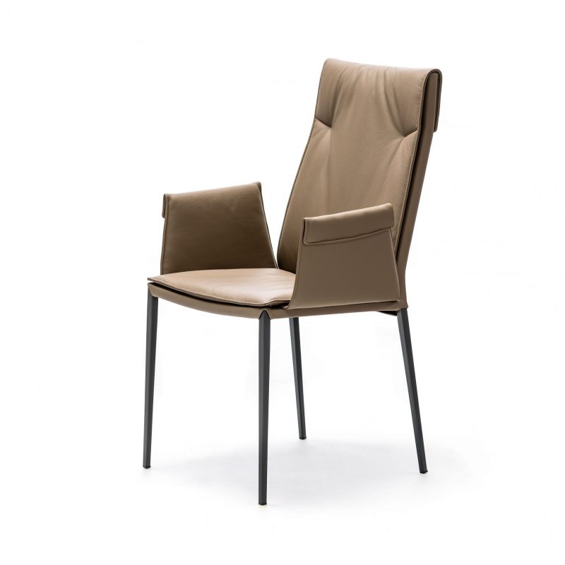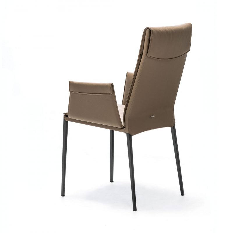 Chair with or without arms with steel frame completely covered in synthetic nubuck, micro nubuck, synthetic leather or soft leather. The cover is not removable.