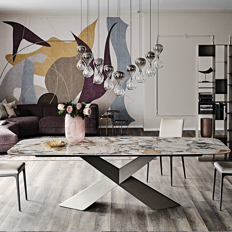 Exquisite in design and crafted in Italy to the highest specification, Tryon features artistic, angled legs that add impact and elegance while the table top is available in a variety of ceramic finishes backed on smoked grey glass.