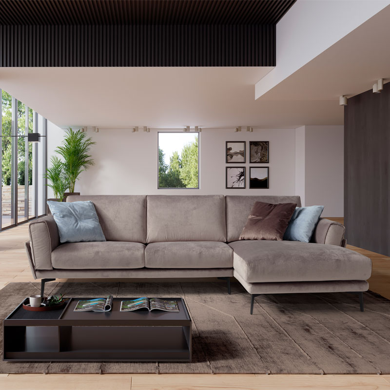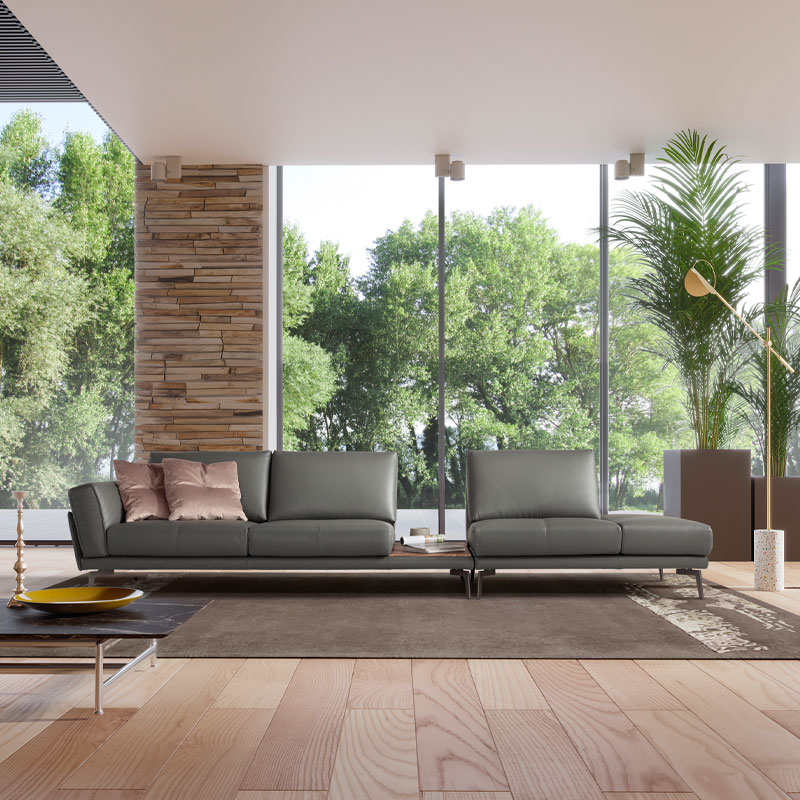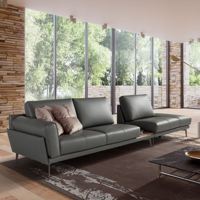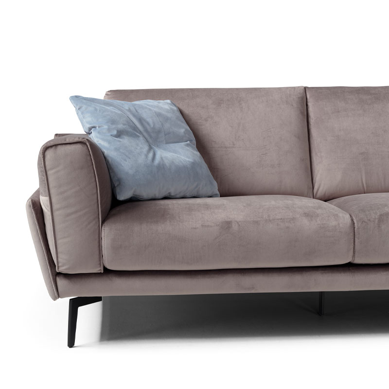 Fascino, by name and by nature: the slimline structure, cushion-style armrest, comfortable seats, tapered legs and top-quality covers. Every detail contributes towards highlighting the fascination of this sofa and the room that it graces.